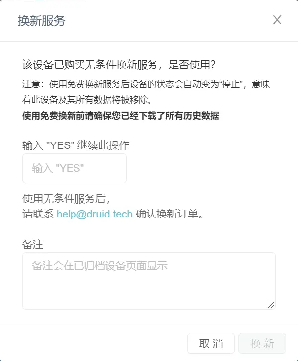 注意:Debut 终生无条件换新服务激活后,设备的数据订阅状态将自动变为“停止”。这意味着该设备的所有信息和采集的全部数据将从您账户下被清空且无法恢复。在您激活 Debut 终生无条件换新服务前,请确保您已将该设备采集的数据下载到本地。