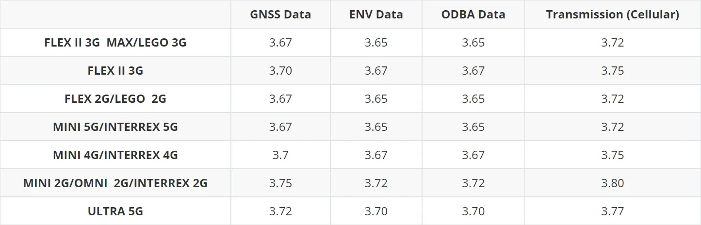 Note: For earlier version of FLEX 2G and LEGO 2G, the GNSS data collection voltage threshold is set at 3.65 V.