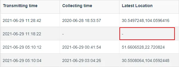 When GNSS positioning fails, you can see a - mark in the Latest Location column of the device.
