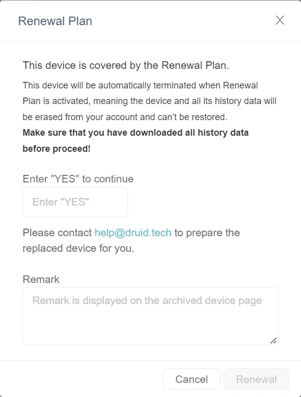 Kindly note that the device will be automatically deleted when Renewal Plan is activated, meaning the device and all its history data will be erased from your account and can't be restored. So make sure that you have downloaded all history data before proceeding.
