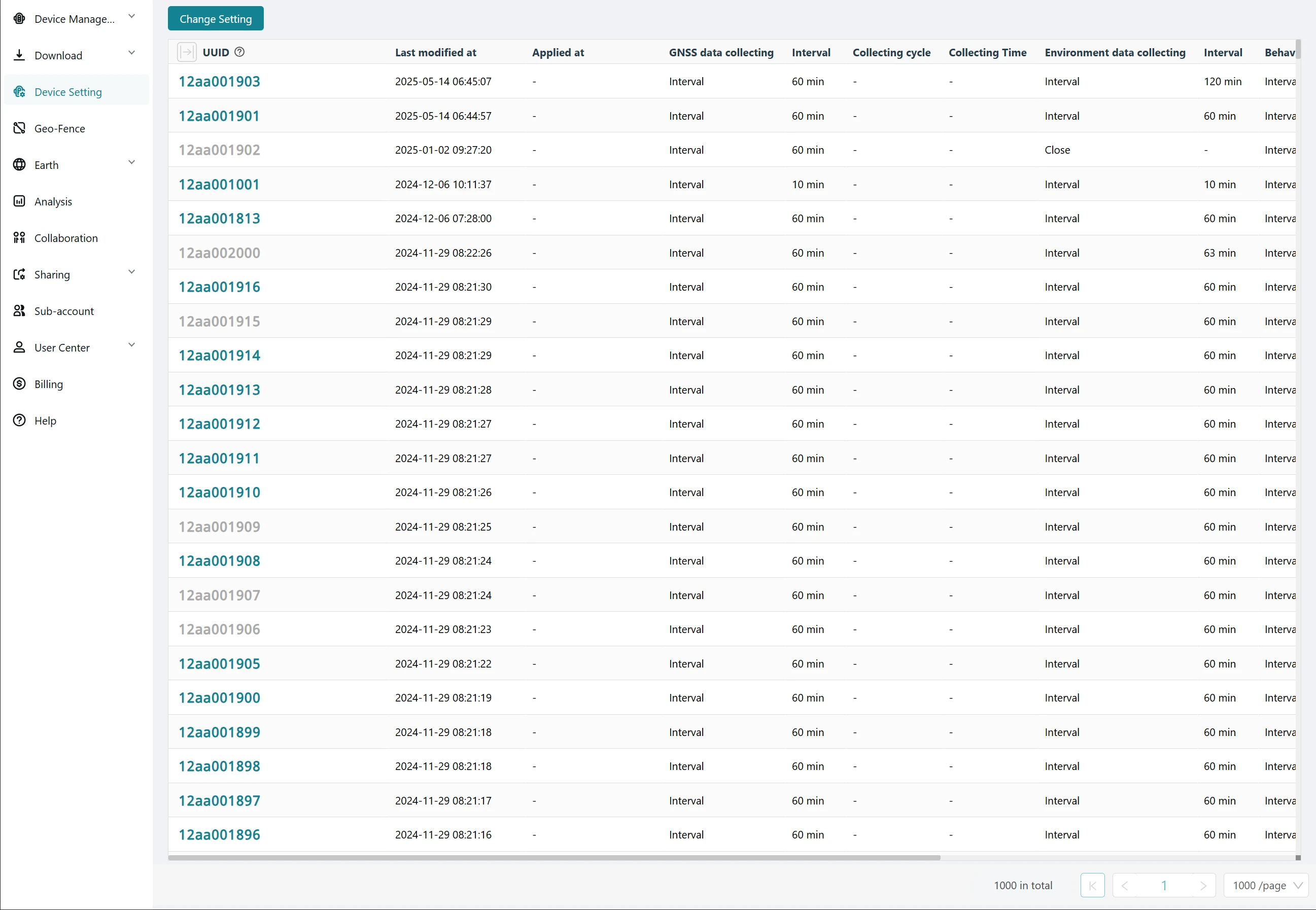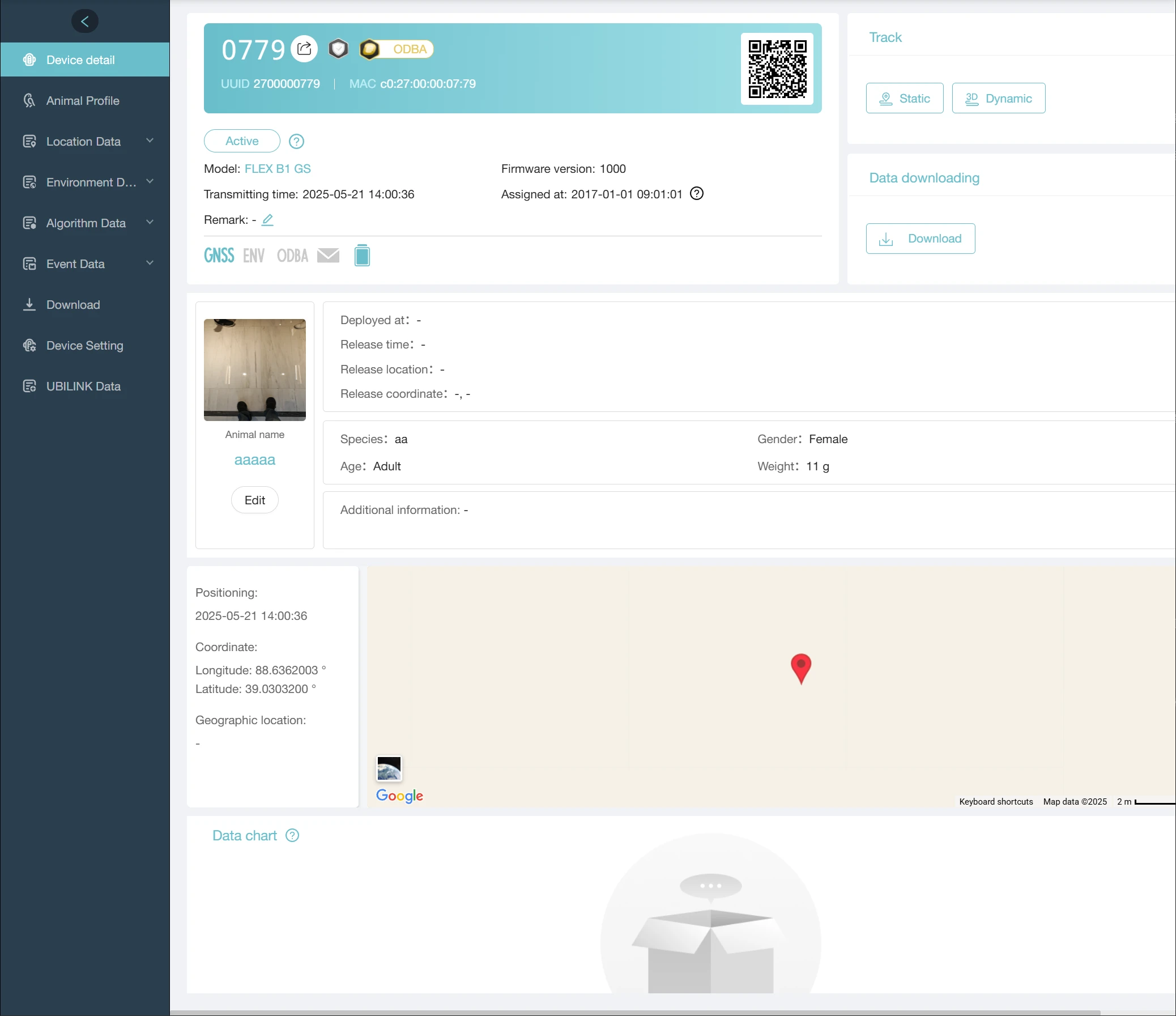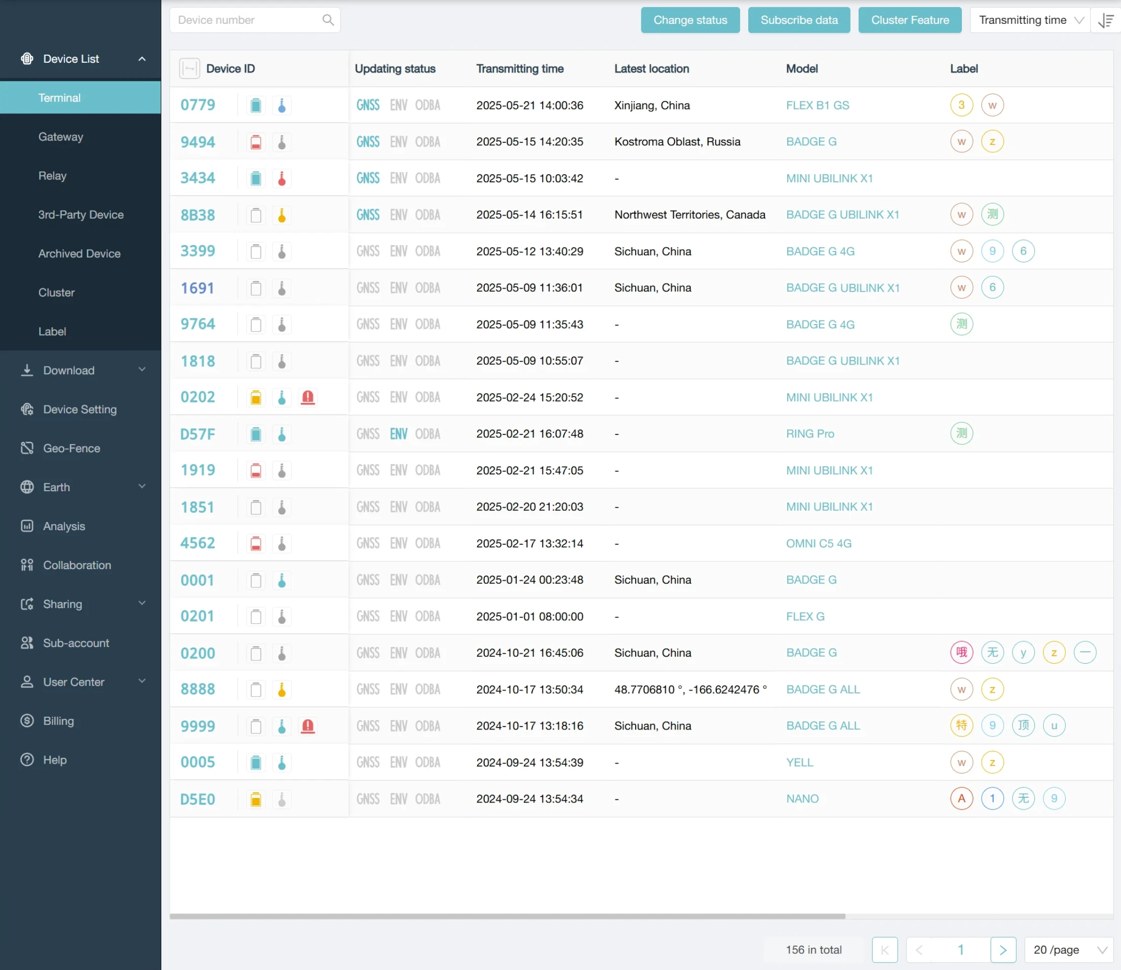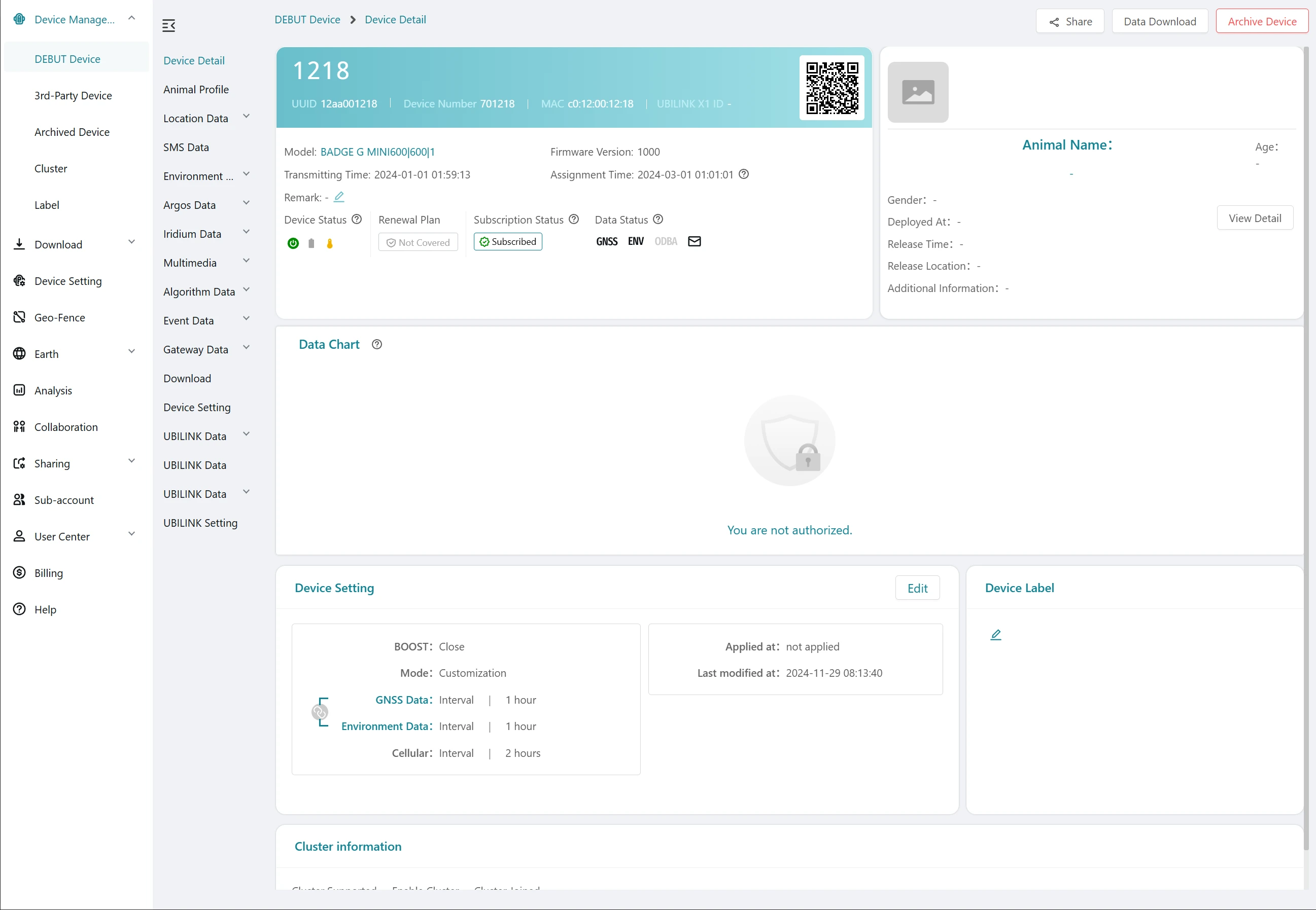 Users can now view data from UBILINK devices and manage their settings. UBILINK stands for "Ubiquitous Link"—a satellite-relayed communication technology that enables data exchange between devices and servers. It overcomes geographic limitations and provides coverage in network blind spots such as polar regions, oceans, and deserts, ensuring reliable, long-distance, and cross-time-zone monitoring for wildlife tracking and other critical applications.