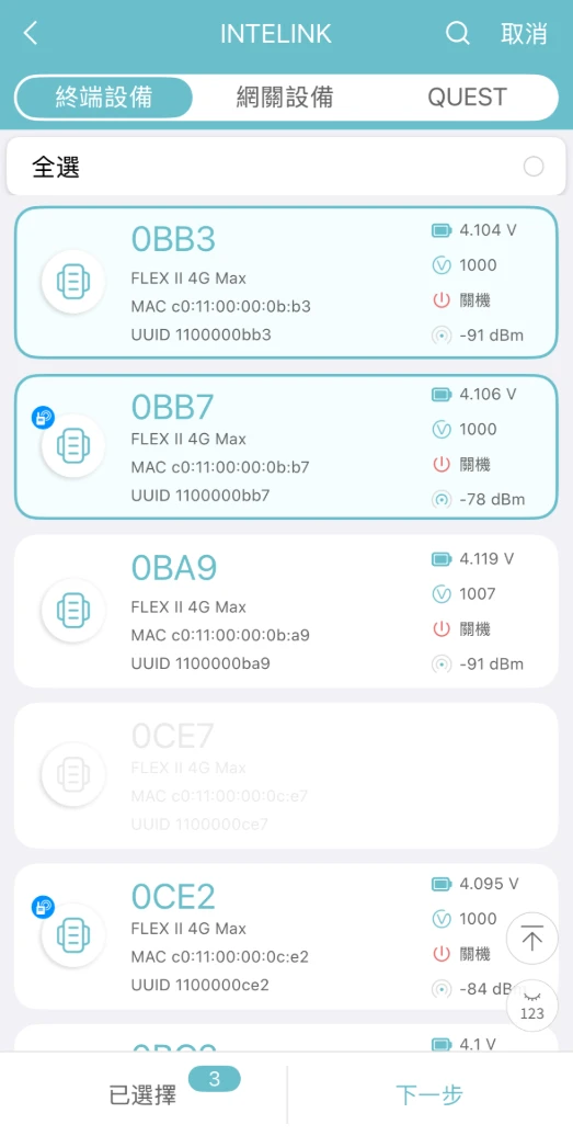 App 開始掃描附近的裝置。被掃描到的裝置會在裝置列表中高亮顯示,沒有被掃描到的裝置則會置灰。